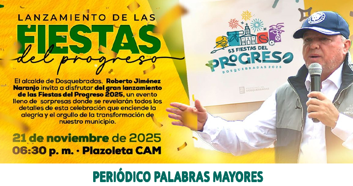 El alcalde de Dosquebradas, Roberto Jiménez, lanzó oficialmente las Fiestas del Progreso 2025, que prometen emocionar a toda la ciudad con un alumbrado mágico, tres grandes conciertos, dos desfiles, del Progreso y Equino y la Feria Agroempresarial. En este espacio, también se dio a conocer jingle, interpretado por Los JR. En un escenario vibrante y cargado de tradición, el alcalde …