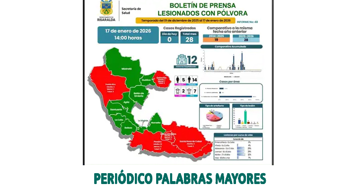 Concluida toda la temporada que implica las fiestas y eventos susceptibles de manipulación de pólvora – incluida la primera quincena de enero de 2026 -, la Gobernación de Risaralda reportó de manera oficial 28 personas quemadas en el departamento por el uso de pólvora, entre el primero de diciembre de 2025 y el 17 de enero de 2026. El análisis …