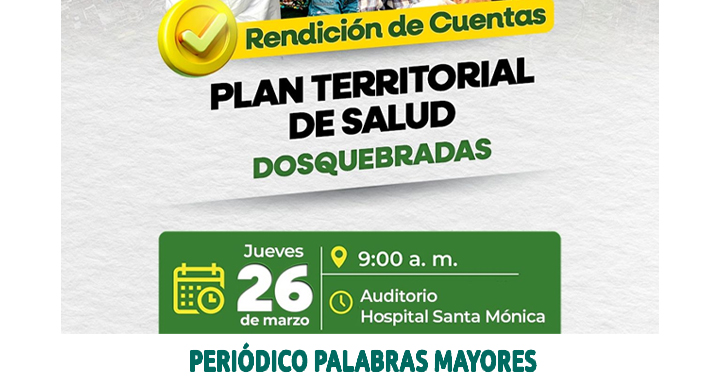 Para conocer más detalles del tema, se realizará la rendición de cuentas este jueves 26 de marzo, a las 9:00 de la mañana, en el auditorio del Hospital Santa Mónica de Dosquebradas. Sobre este proceso, la funcionaria también destacó que, aunque el Plan se formula para el periodo de gobierno, su seguimiento es permanente: “Este es un instrumento que se evalúa anualmente en su cumplimiento, y por principios de transparencia y buen gobierno realizamos esta rendición de cuentas abierta a la comunidad, para que los ciudadanos conozcan cómo se ejecutan los recursos y cuáles han sido los resultados”.